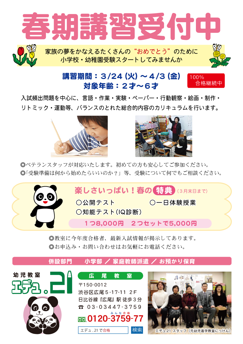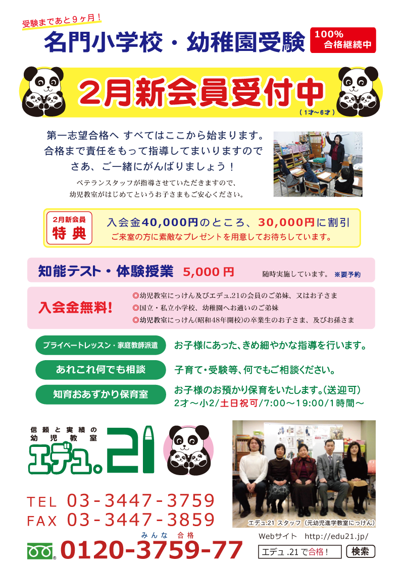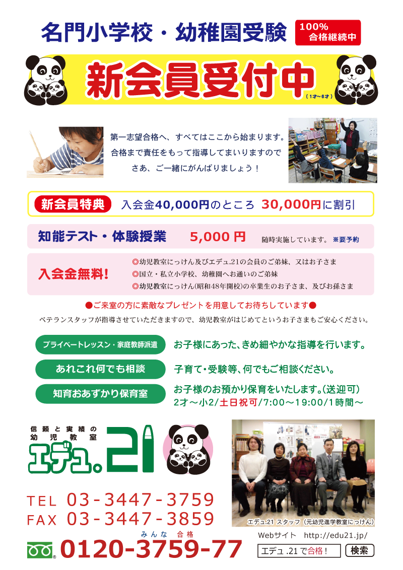 新学期4月新会員募集 2024年度小学校入試倍率 2024年度合格者一覧更新 |